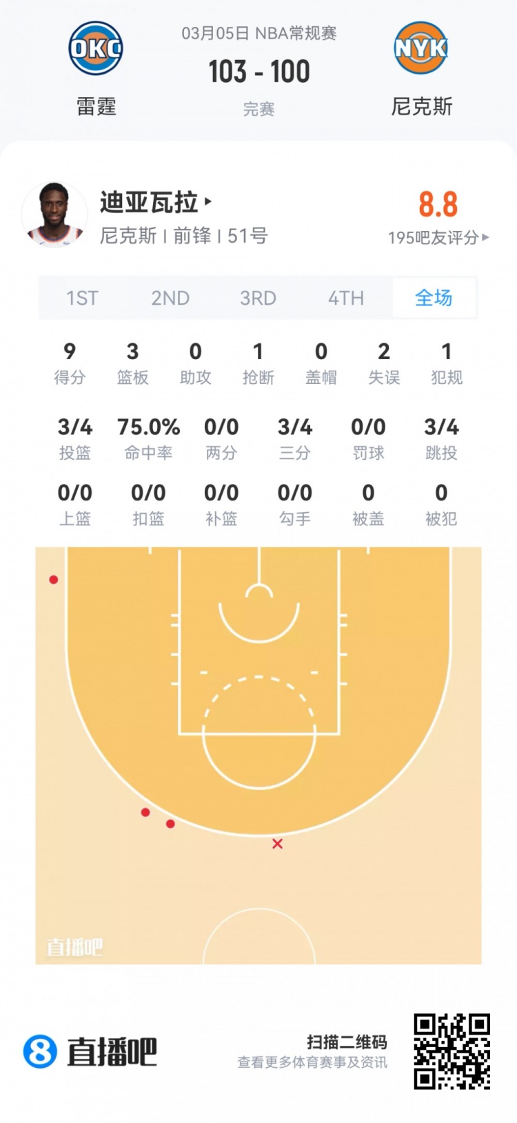 尼克斯次轮51号秀穆罕默德·迪亚瓦拉 登场13.3分钟