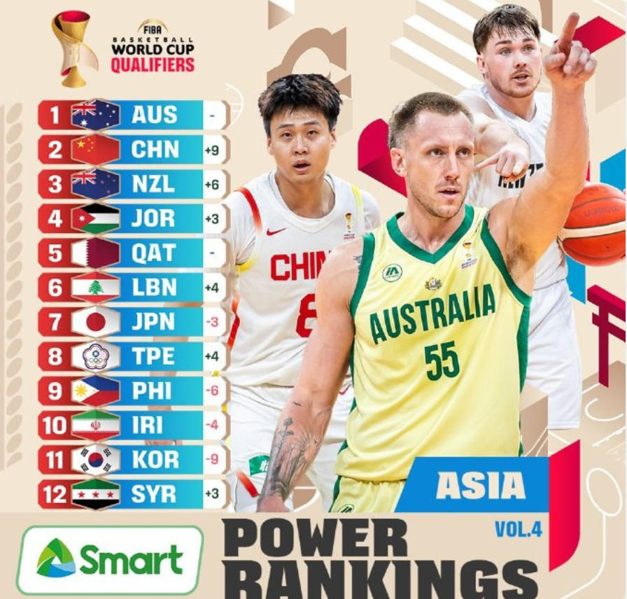一个窗口期赢下两场胜利,中国男篮的排名飙升9位,直接冲到了第2位,也是令人惊讶。值得一提的是,韩国男篮原本在榜单的第2位,但他们在第二个窗口期里连续输给日本男篮和中国台北男篮,于是排名跌了9位,排在第11位,刚好跟中国男篮互换。